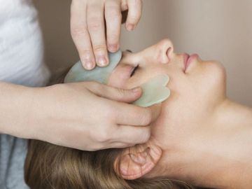 GUA SHA Facial is an ancient Chinese healing technique that uses a stone tool to apply pressure and stimulate circulation. Before we go any further, there’s an important distinction to be made. On the body, it’s really broad vigorous strokes to bring out toxins, increase blood flow, and relieve tension.
